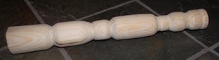 I made this spindle turned project from a 2" x 2" piece of pine. It's a soft wood, so it was easy to rough from a square blank to a cylinder. I used a few different tools to experiment and see what I could do.
